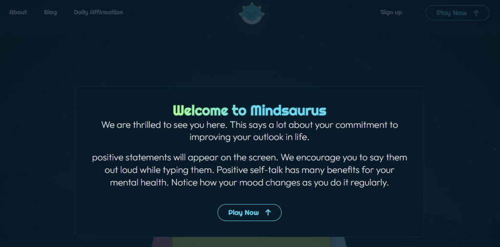 Mindsaurus is a wellness app and digital platform designed to help users, particularly teens and young adults, cultivate a more positive mindset, practice gratitude, and manage negative thoughts.